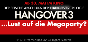In diesem Fall geht es um den Abschluss der Kulttrilogie Hangover 3, welcher ab dem 30. Mai 2013 auch endlich in den deutschen Kinos startet.