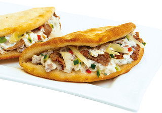 Toskanisches Dönerbrot, saftig gefüllt mit pikantem Truthahn-Kebab-Fleisch, Weißkraut und original Zaziki