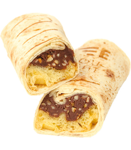 Süße Vanille-Weizentortilla, gefüllt mit einer Frischei-Waffel, Marzipan-Nougat-Creme, gerösteten Haselnüssen und traditionellem Lebkuchengewürz