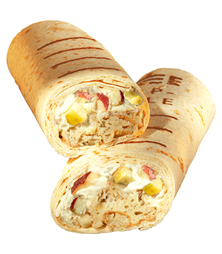 Süße Vanille-Weizentortilla, gefüllt mit einer Frischei-Waffel, Vanille-Frischkäse-Creme sowie einer fruchtig-winterlichen Apfel-Zimt-Füllung