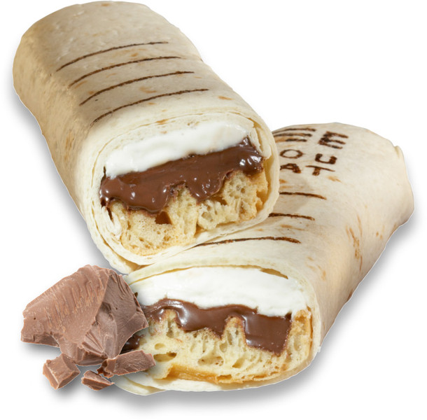 Vanille-Weizentortilla, gefüllt mit einer Frischei-Waffel, leichter Vanille-Frischkäse- sowie Nuss-Nougat-Creme